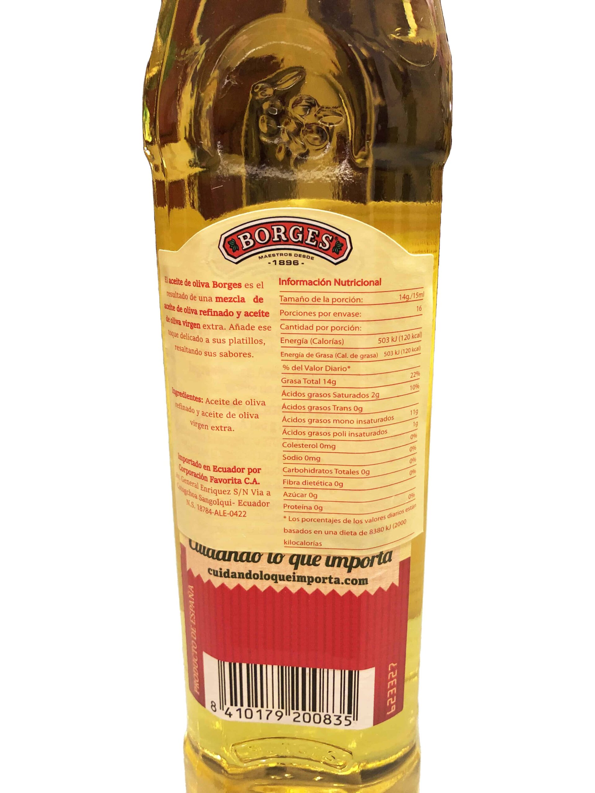 Aceite de oliva marca Borges, para aderezar o cocinar; botella de 250ml