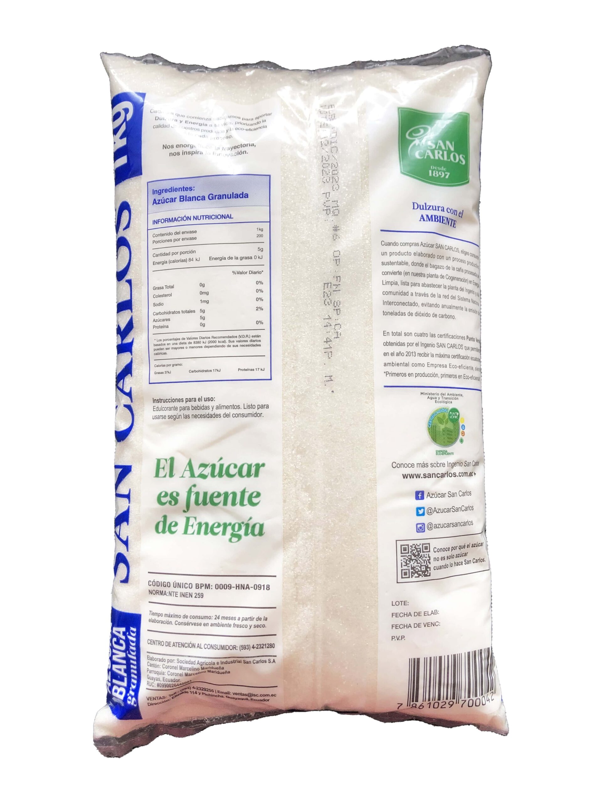 Azúcar blanca granulada marca San Carlos, funda de 1 Kg