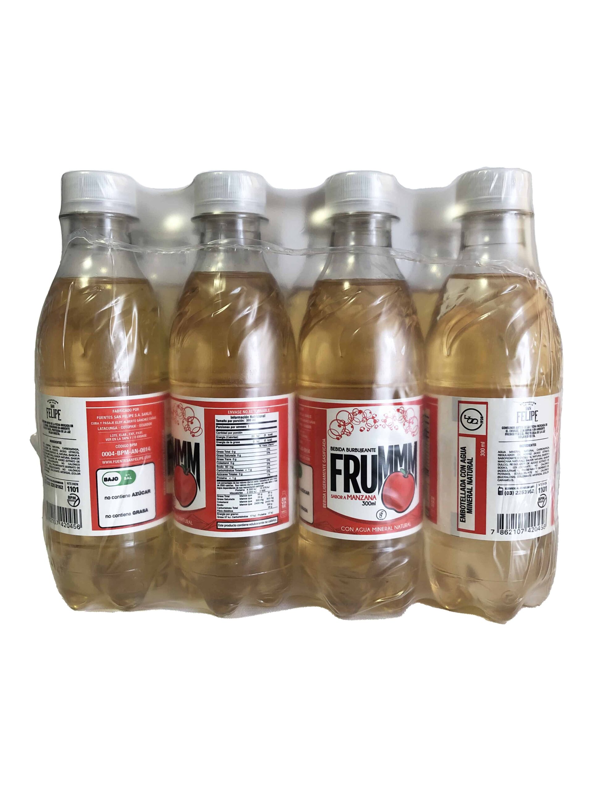 Bebida burbujeante sabor a manzana, con agua mineral; marca Frumm, botella de 300 ml