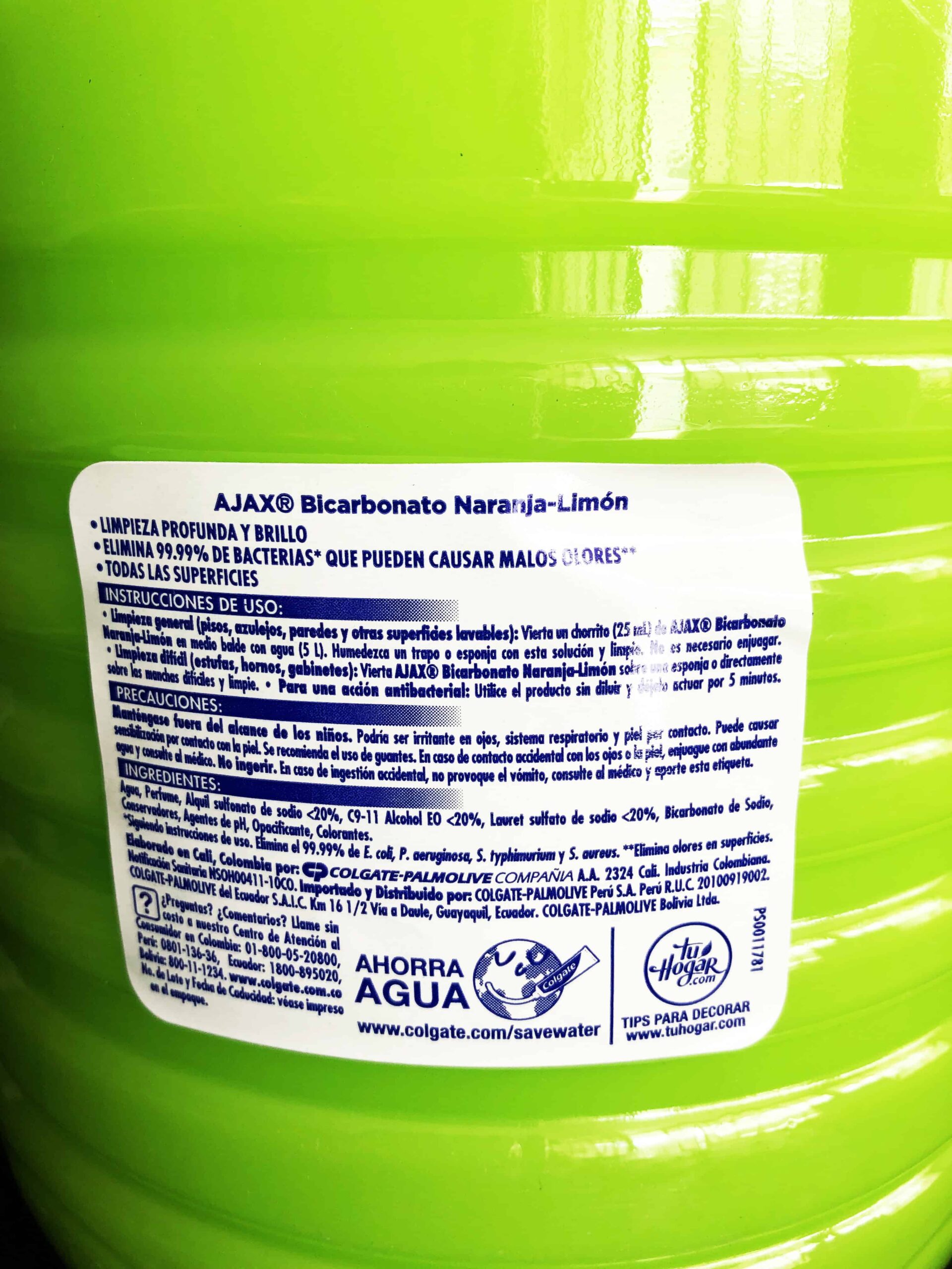 Desinfectante marca Ajax con Bicarbonato, aroma a Limón, envase de 3 litros