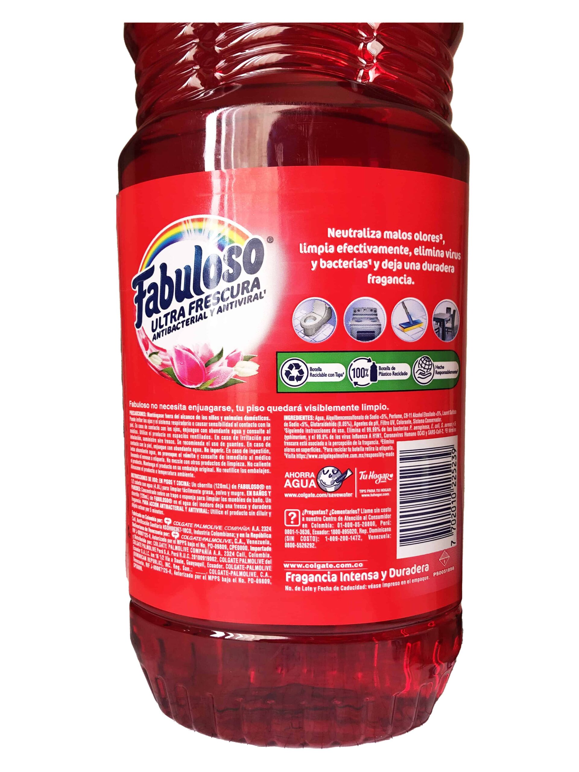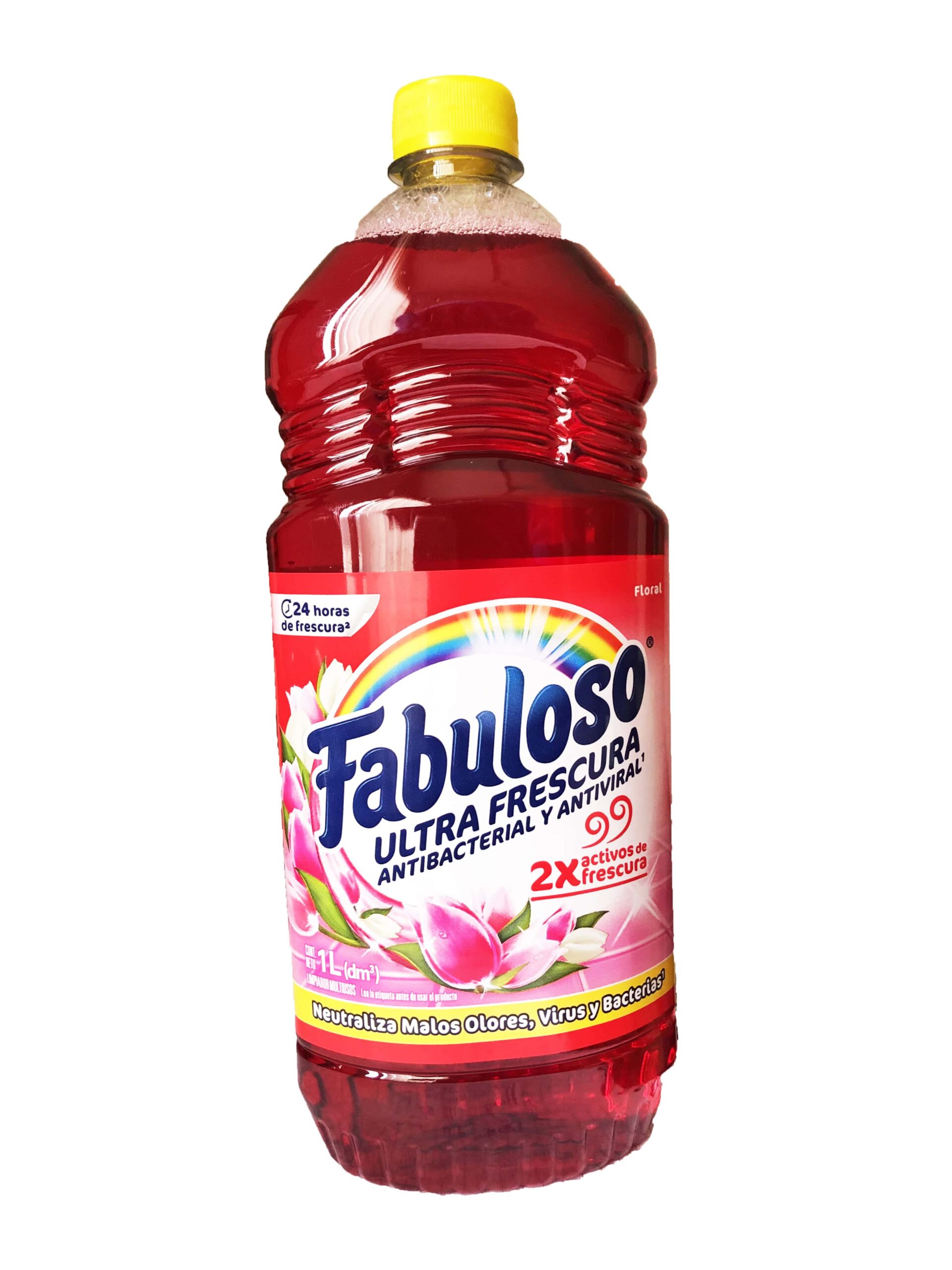 Desinfectante líquido antibacterial y antiviral marca Fabuloso aroma Floral, botella de 1000ml