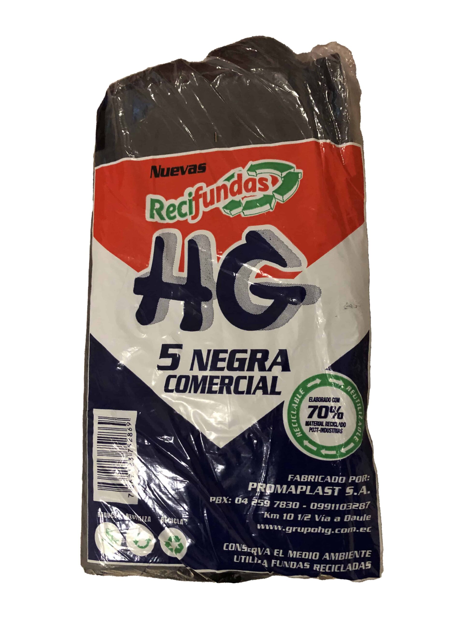 Funda tipo camiseta negra, tamaño #5 comercial, 70% reciclado post industrial, paquete de 90u