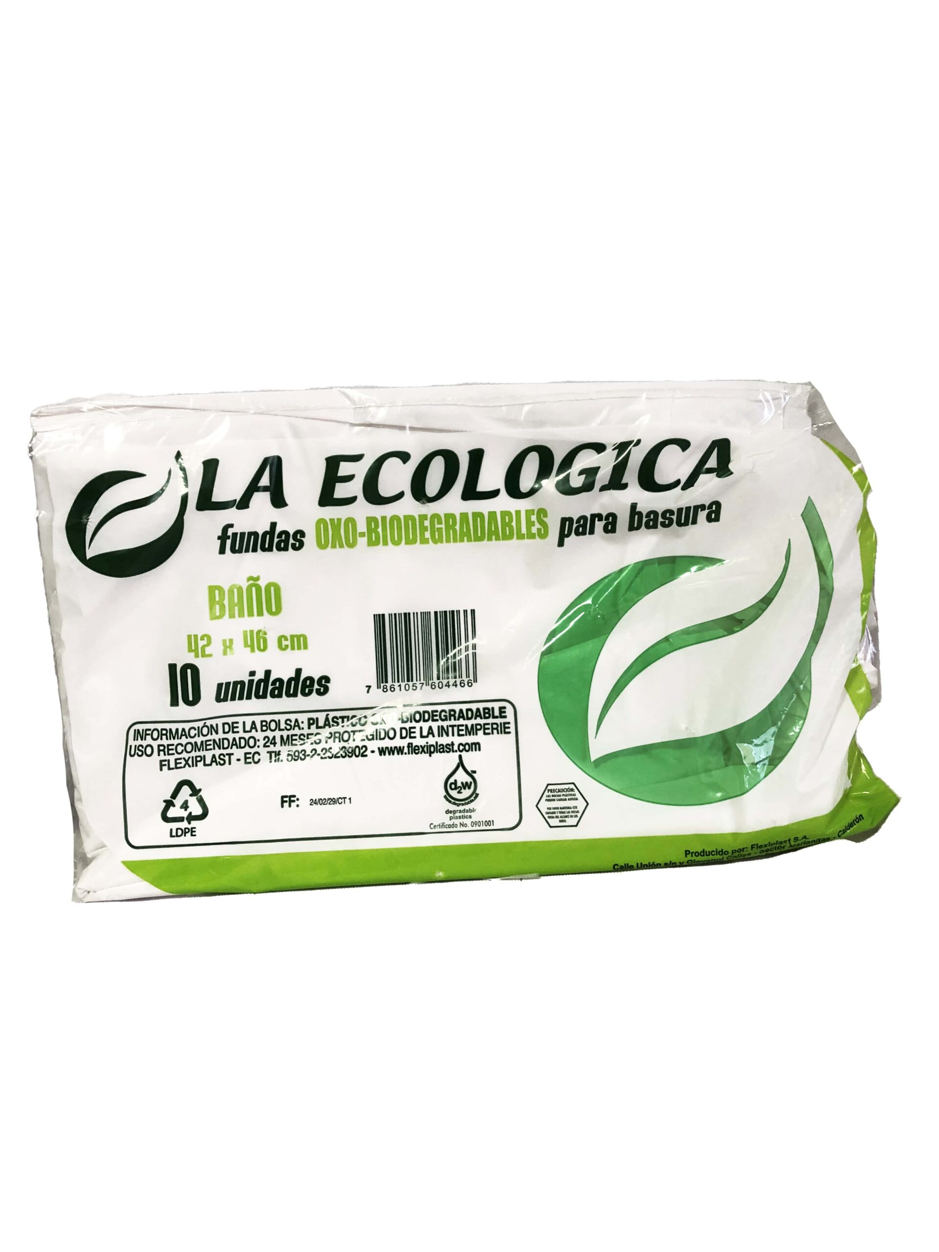 Funda plástica biodegradable marca La Ecológica, paquete con 10 unidades tamaño 42x46cm ideal para baño