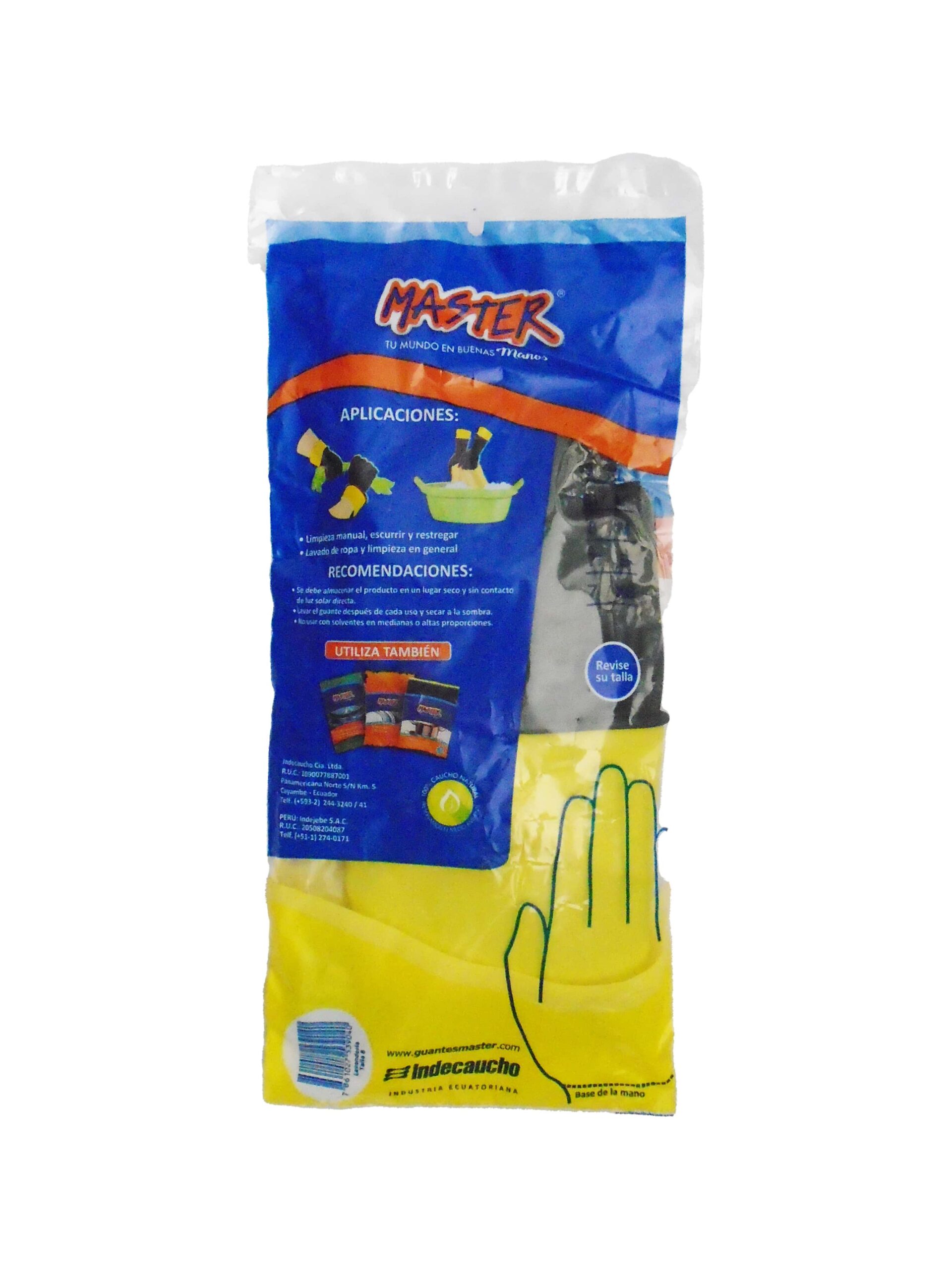 Guantes de caucho doméstico para lavandería marca Master, talla 8 bicolor, par