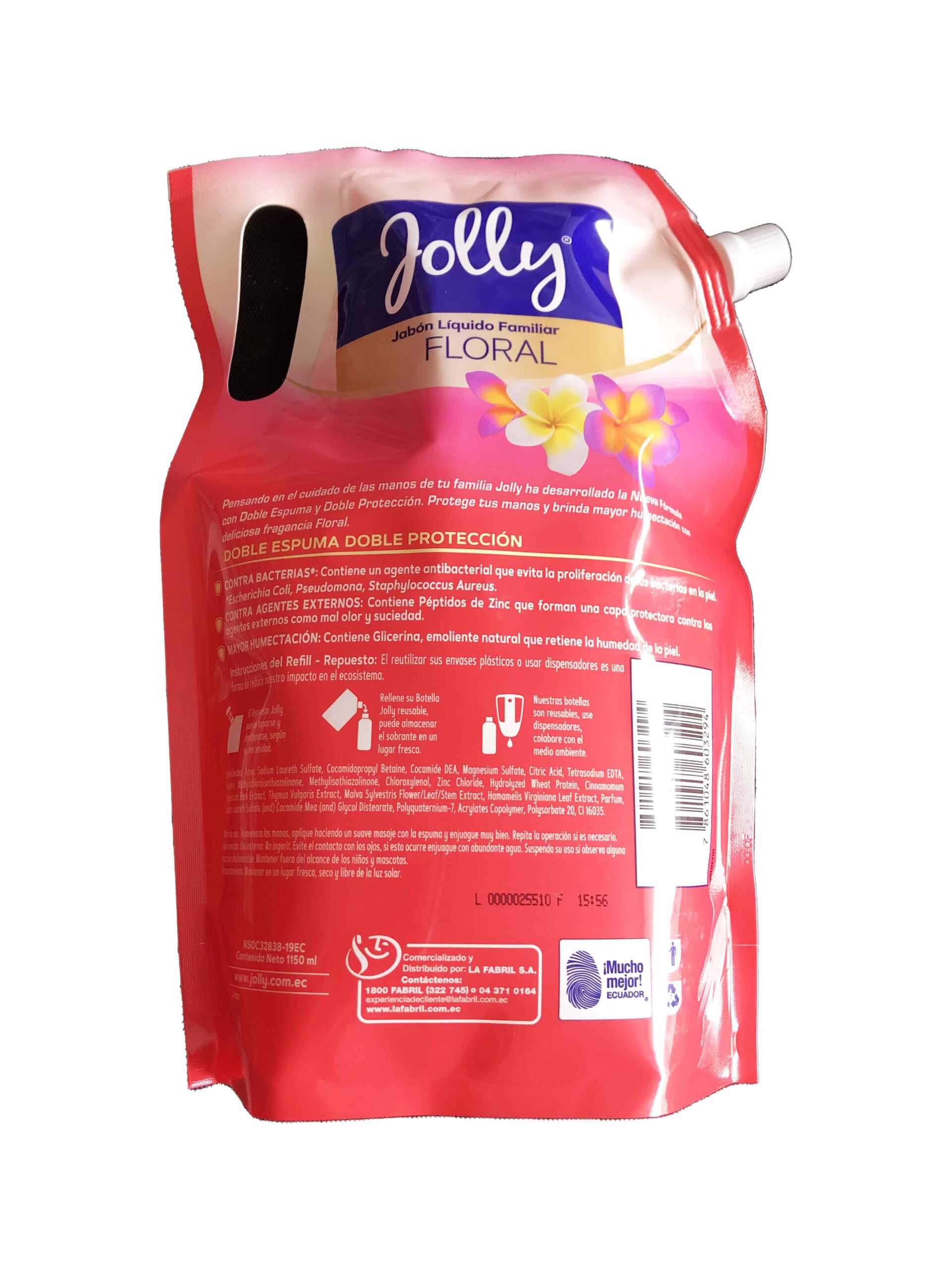 Jabón líquido para manos marca Jolly, aroma floral, doy pack 1000ml