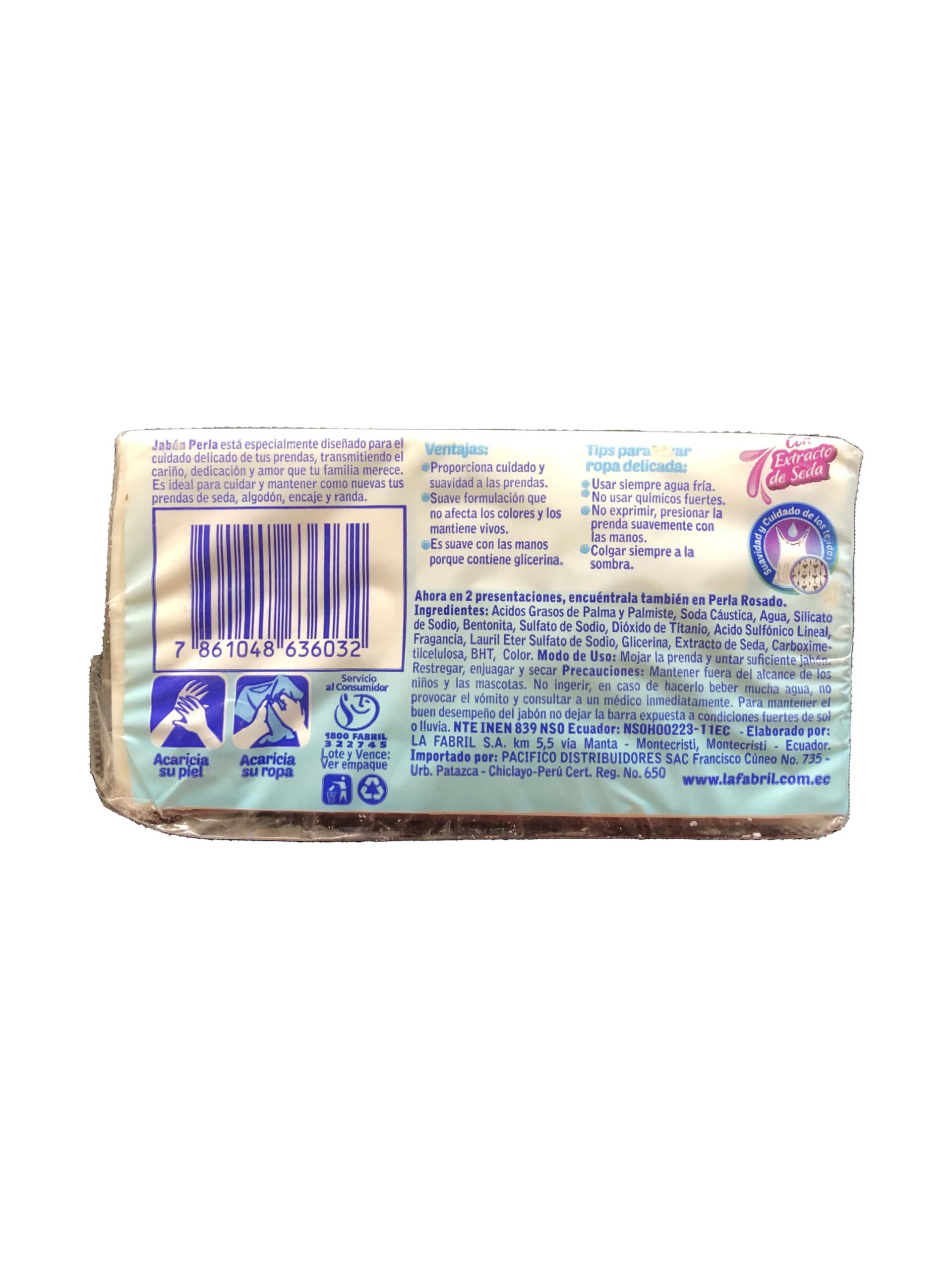 Jabón blanco en barra, marca Perla, 200g