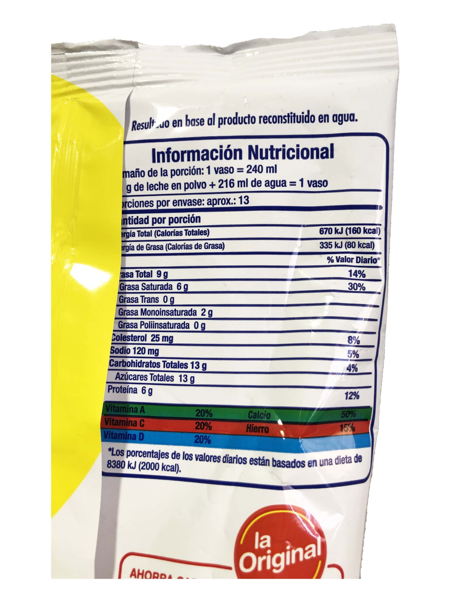 Leche entera en polvo marca La Original, paquete de 400g