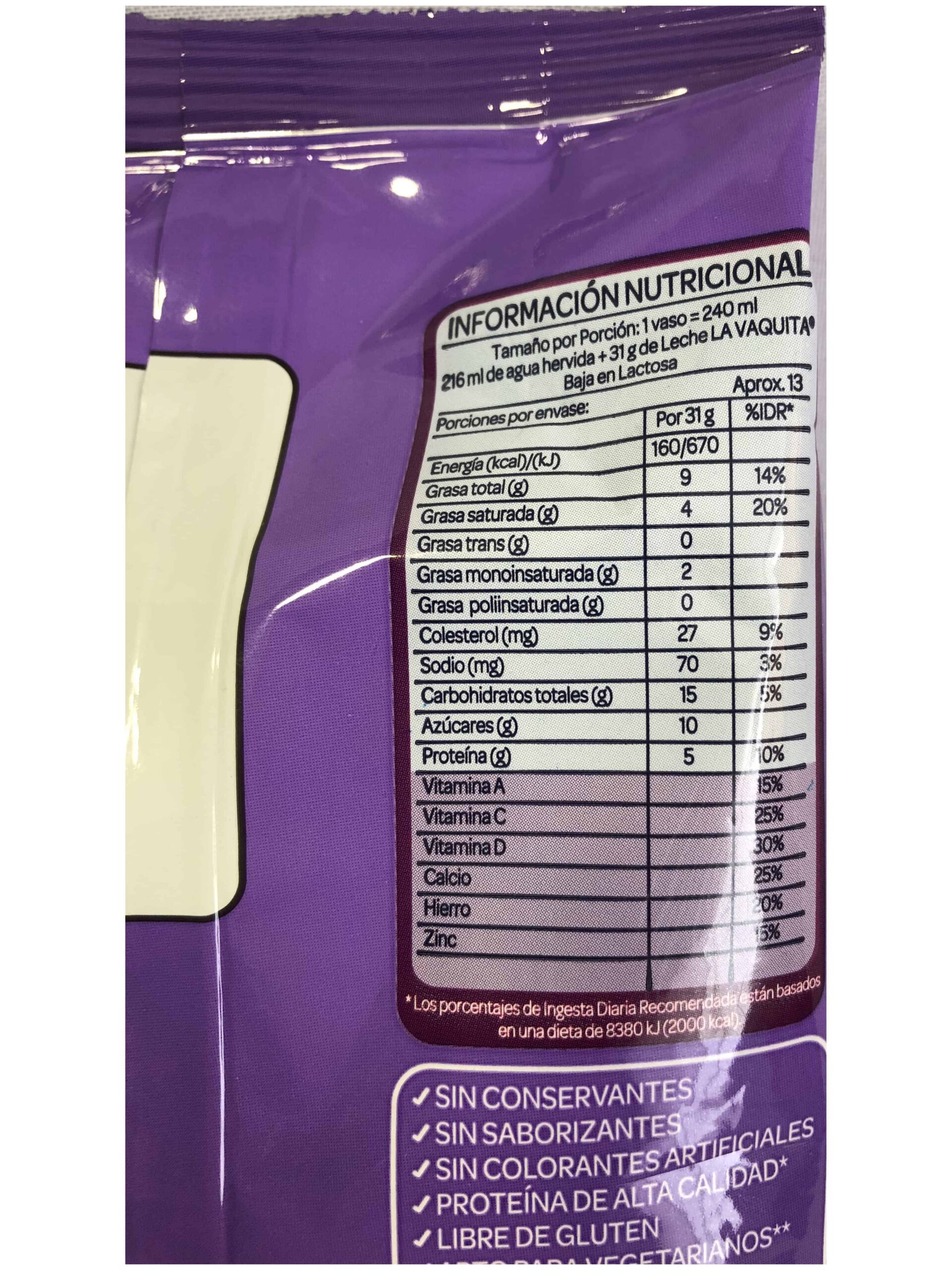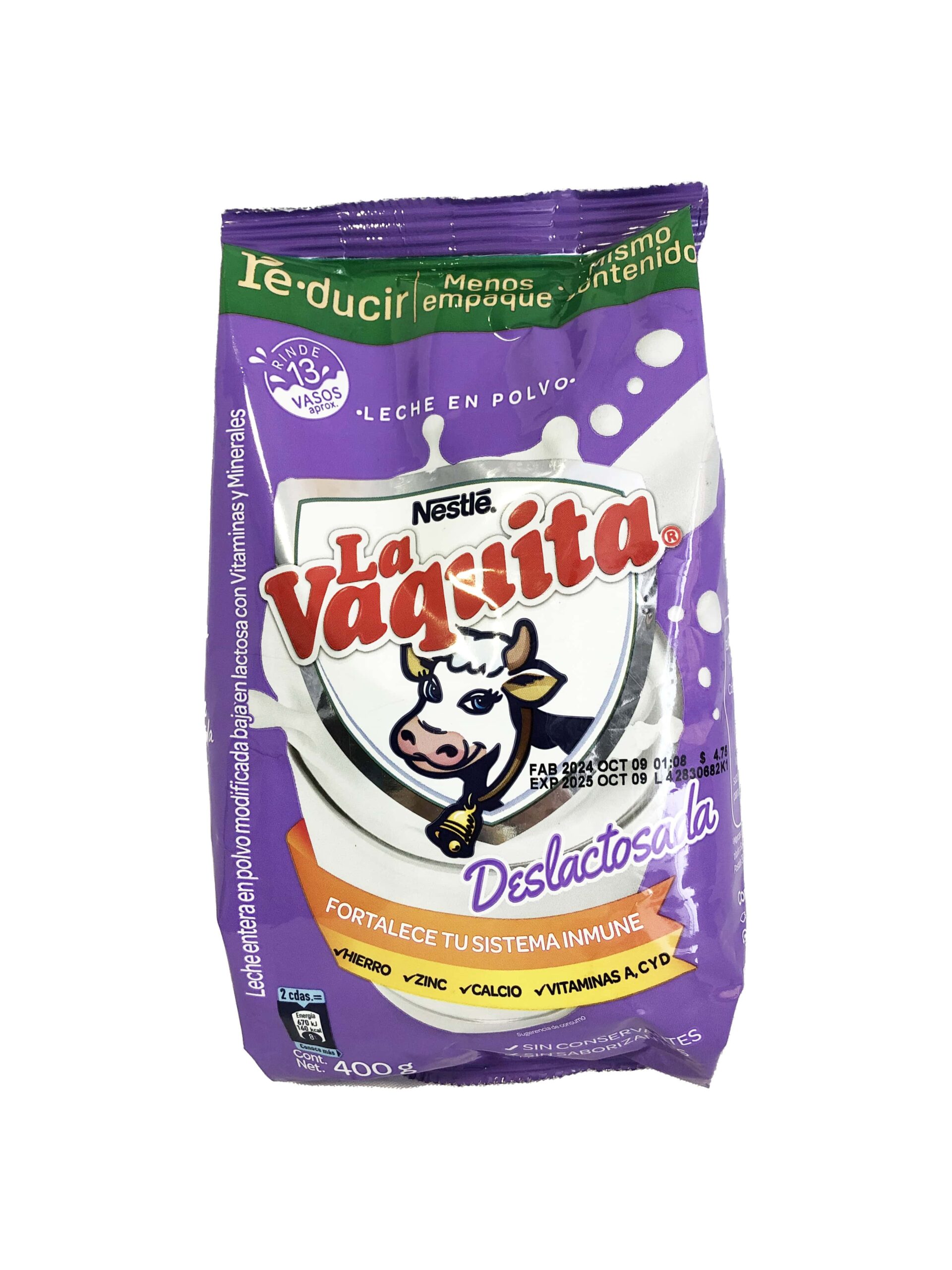 Leche en polvo deslactosada, marca La Vaquita, sachet de 400g