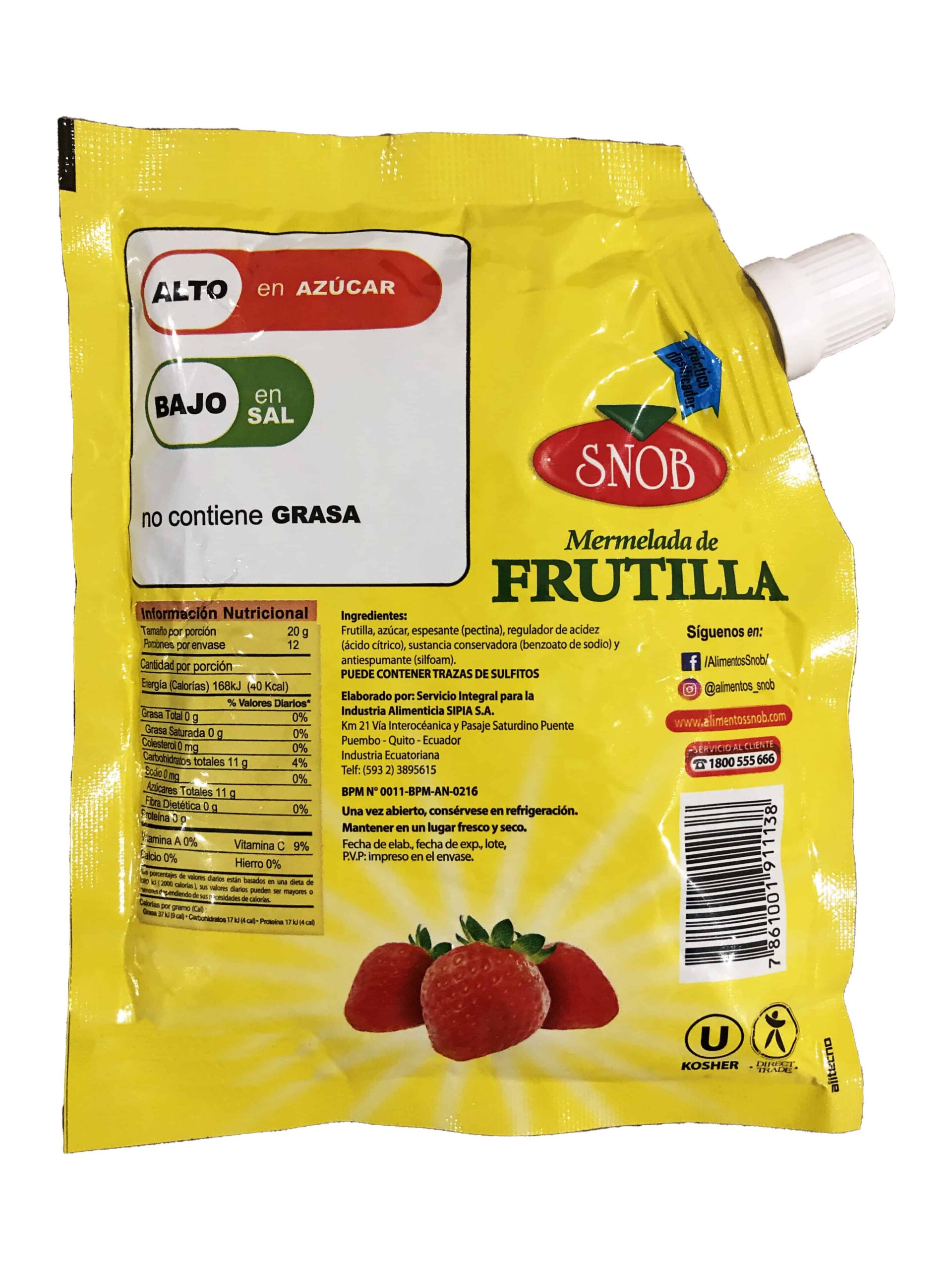 Mermelada de Frutilla marca Snob, sachet de 240g
