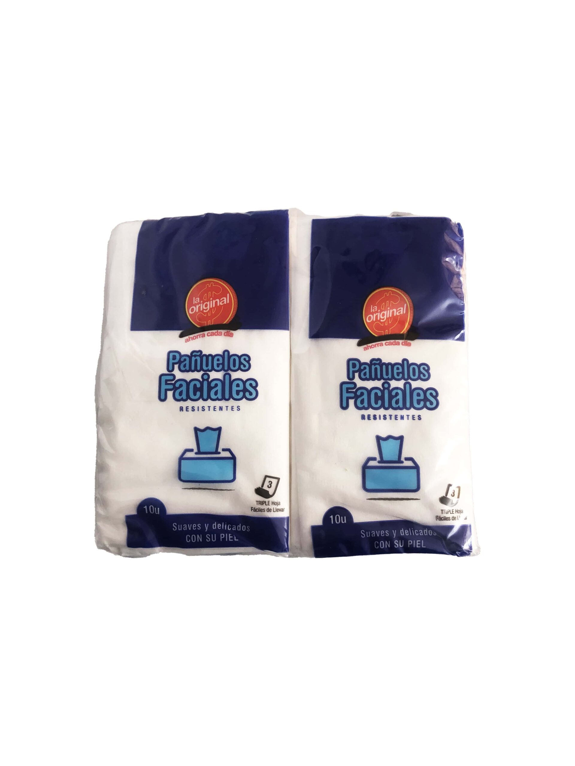 Pañuelos faciales marca La Original, triple hoja; 4 paquetes de 10 unidades